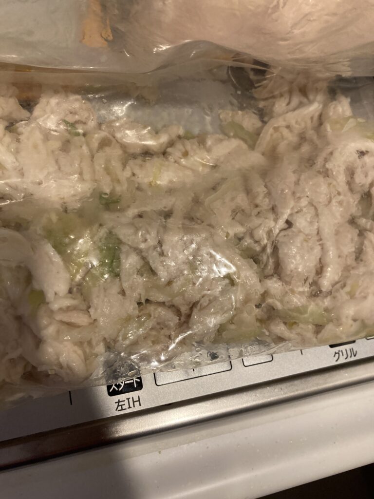 BONIQ調理50分経ったらジップロックごとささみ肉を取り出して、